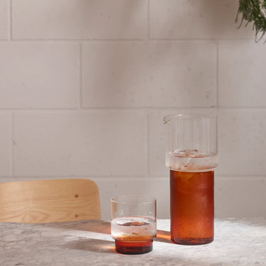 RYE glassware range has been designed to elevate the drinking experience, whether water, beer, wine or a meticulously mixed cocktail. The range is well-proportioned and graphic in form, and the subtle accent of coloured glass elevates the drink whilst still allowing you to appreciate the shade of the drink. In the Rye range, there is a glass for your favourite cocktails, liquors and soft drinks, so you can easily match glasses when setting the table. The glasses are skillfully handcrafted from robust borosilicate glass. The step detail also allows the glasses to stack, saving space in your cupboard or your drinks trolley.
