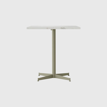A contemporary interpretation of the café table, the Nook Dining Table offers a poised and practical foundation for daily rituals. Designed with a slim, four-star base and gently tapering stem, its unobtrusive presence lends itself to both intimate meals and shared conversations. Powder-coated steel in Ivory, Olive or Black complements a choice of Audo tabletops in stone, ceramic, wood or linoleum, allowing the table to take on a quietly expressive character. Suitable for indoor and outdoor use.