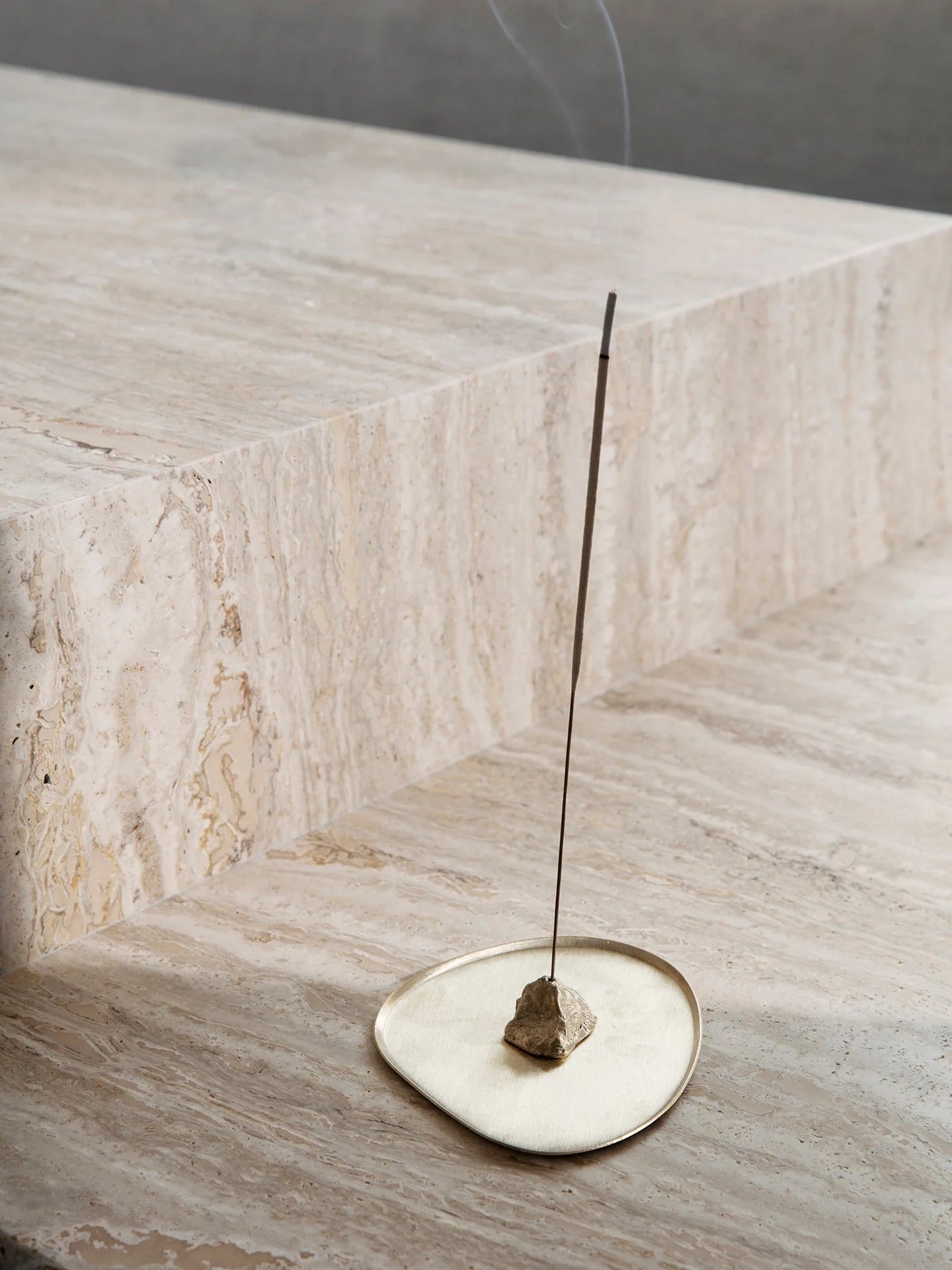 Scents drive memories and emotions, and they can be essential in setting the mood. To help you balance an atmosphere or creating a space of tranquillity in your everyday life, we have designed a simple incense burner. Made from natural brass, the holder of every incense stick is a cast stone, and they tray make sure to pick up the ashes from the incense sticks.