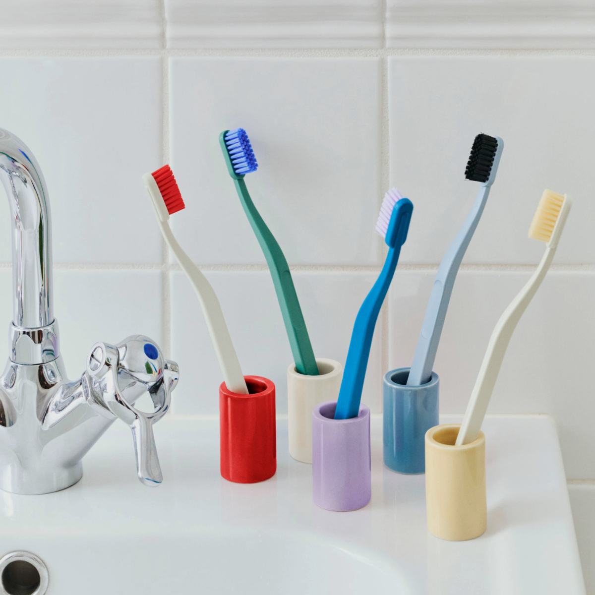 Keeping the simple design and functional, the Tann Toothbrush is manufactured by tooth care professionals Jordan. Made with a plastic handle and nylon brushes in a variety of colours.