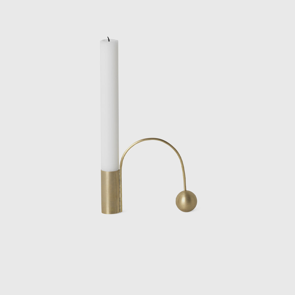The Balance Candle Holder displays an exercise in mastering the art of balance, each part counter-weighing the other to reach a moment of tranquil stillness. The geometrical shapes are both sculptural and functional, as the arch may be used as a handle to carry the candle holder.