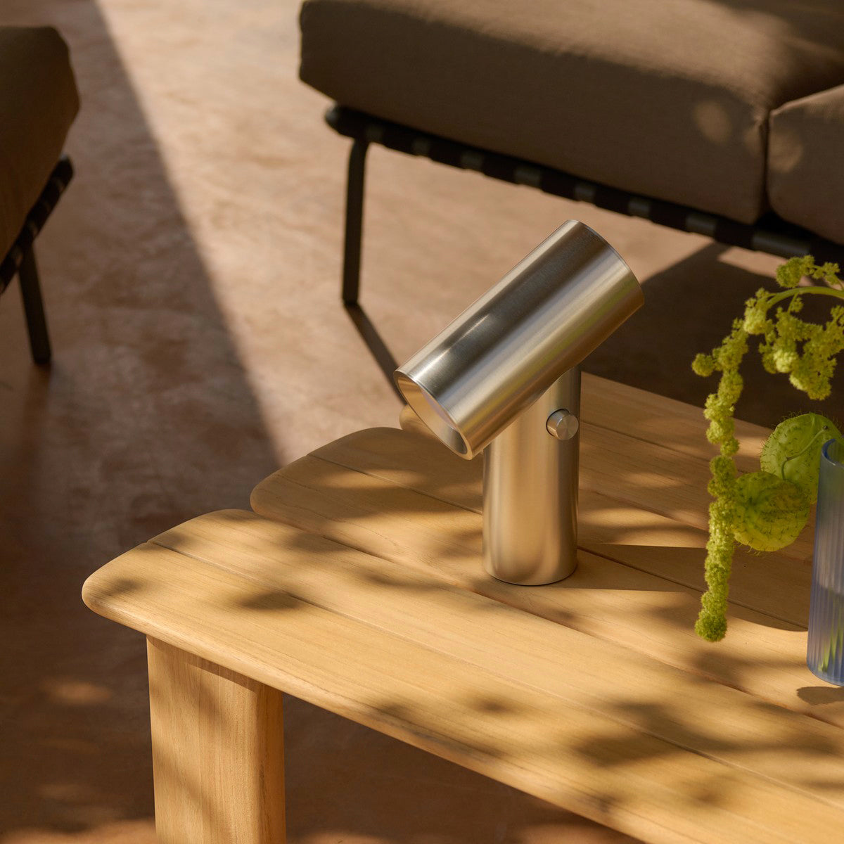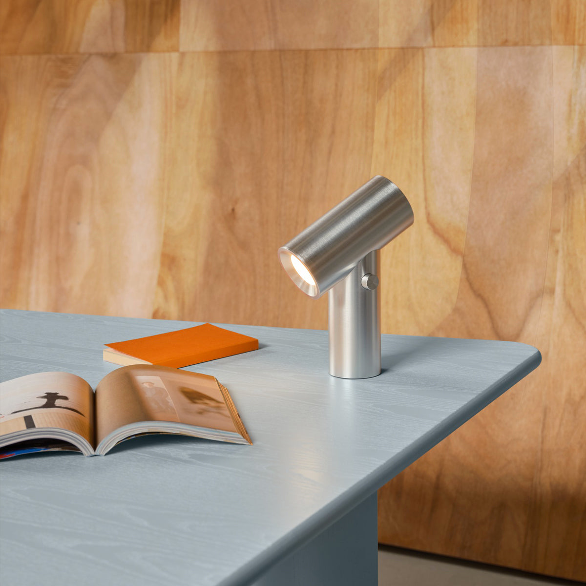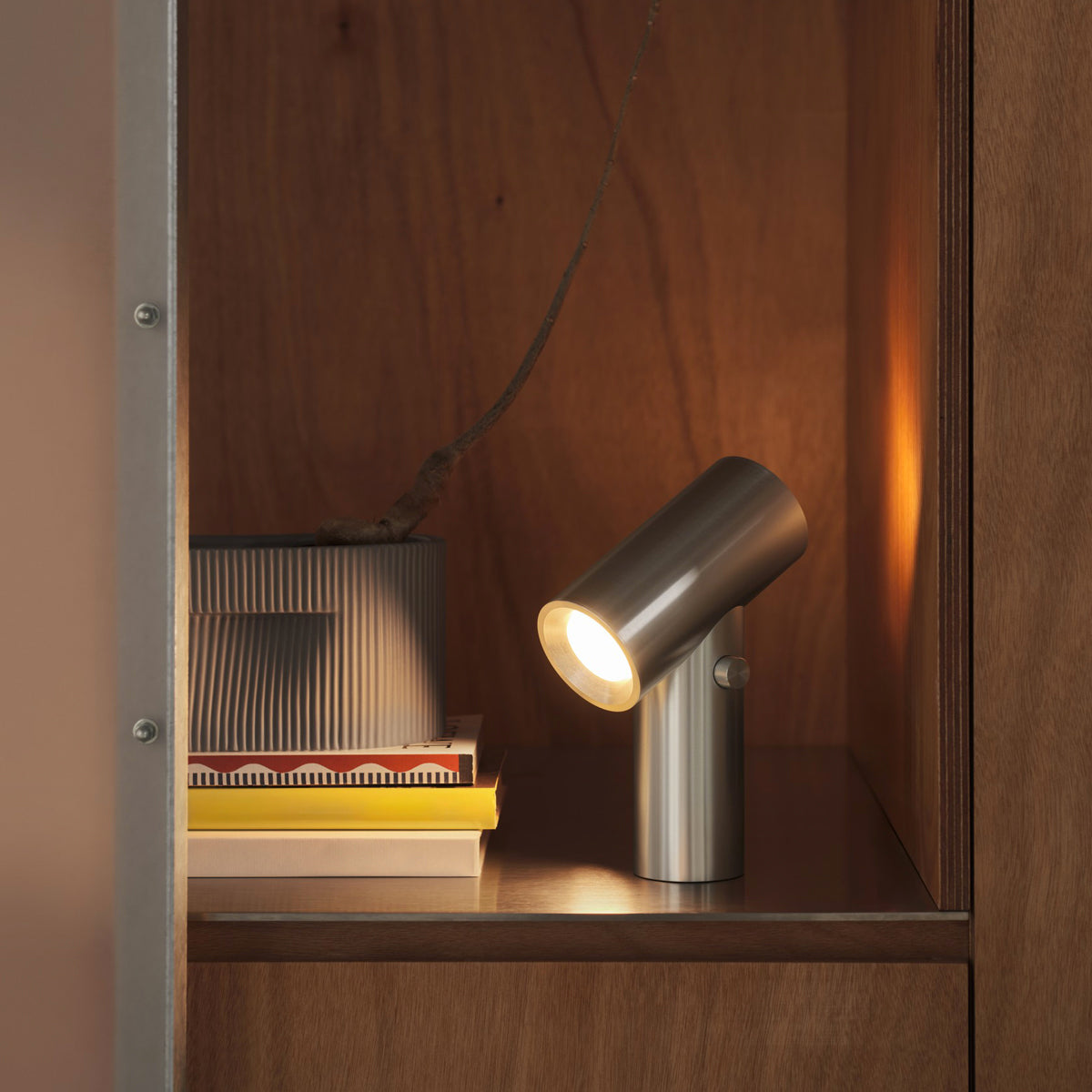 The Beam Portable Lamp is a high-end lighting solution with a modern expression and intuitive user-friendliness. Featuring a unique cylindrical design, it emits light from both ends and allows users to select between three different light intensities using a playful dial. Its portable format makes it easy to place on tables or shelves, providing direct light or an ambient glow. With an IP56 rating, it’s also suitable for outdoor use. Designed for longevity, the lamp is crafted from anodised aluminium and features a user-replaceable light source. Compact and versatile, it functions as an accent light, an atmospheric detail, or a sculptural object.