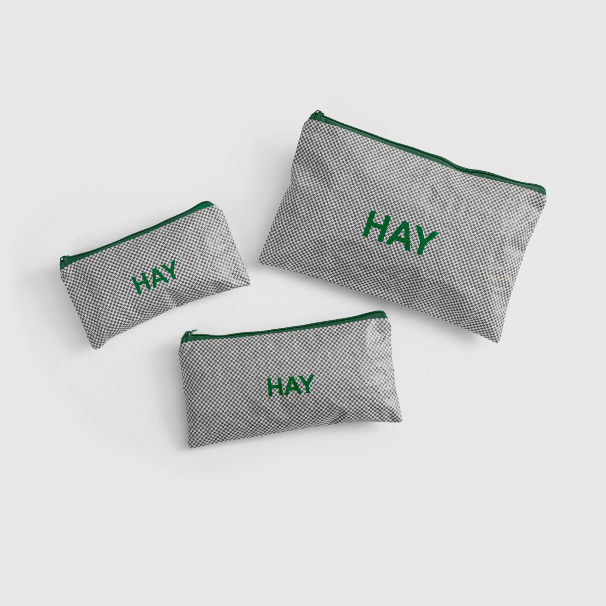 Made in a strong and durable waterproof material containing 80% recycled plastic, the Candy Mono Wash Bag is a range of colourful and practical wash bags for storing and transporting cosmetics and bathroom essentials. Featuring a zip fastening and HAY logo, they keep your items securely enclosed without getting wet. Available in three designs, the Wash Bag, Box Wash Bag and Flat Wash Bag, each set comprising of three wash bags in different sizes. Available in different colour options.