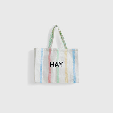 Made in a strong and durable material with 80% recycled plastic, the Candy Striped series is a collection of colourful and practical bags for carrying shopping and other everyday items. Available in different designs that vary from a small, hand-held bag to a super-sized shopper.