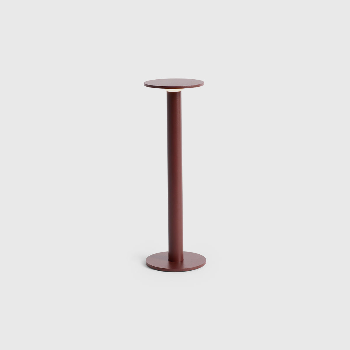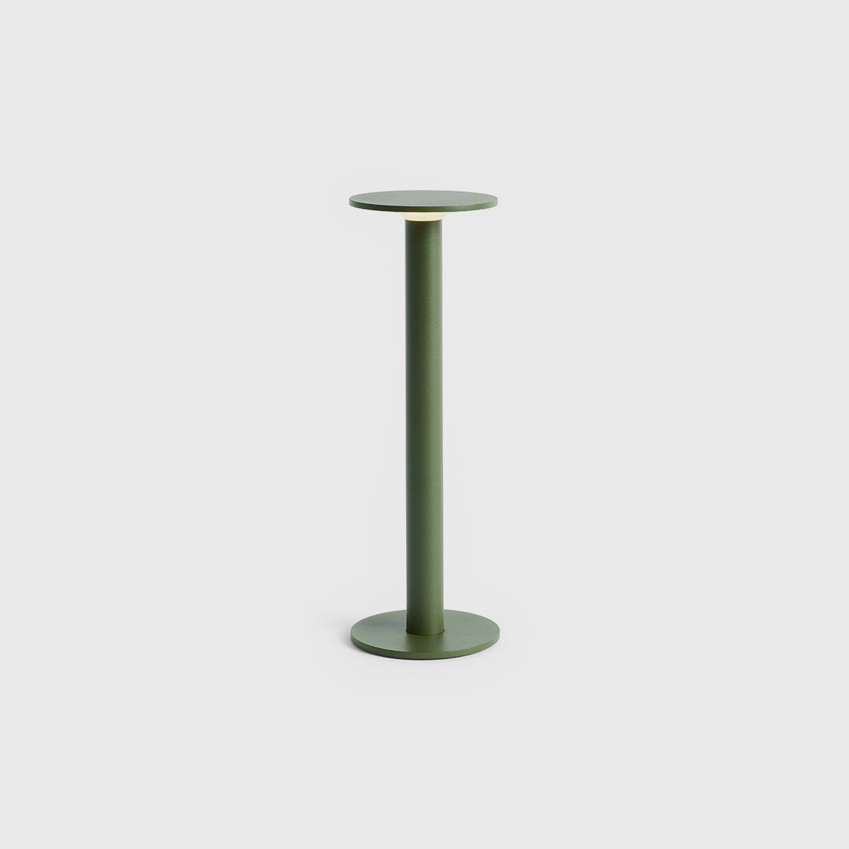 A compact, portable lamp designed to provide light without drawing focus to itself. Its slim profile takes up little space, while the downward cast of light gently illuminates the surface beneath it. An integrated magnet in the base allows attachment to metal surfaces, and a flat steel base is included for use on non-magnetic surfaces. Lightweight and rechargeable via USB-C, it offers cordless flexibility and effortless mobility. Available in various heights and colour options, it works equally well on its own or arranged in groups, making it suited to everything from intimate settings to shared spaces.