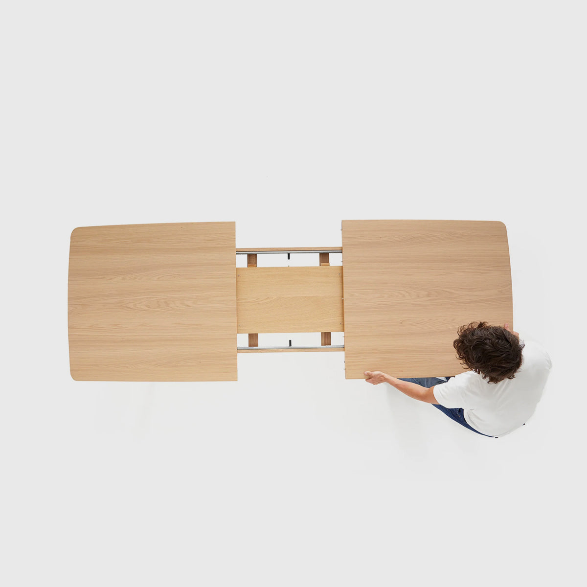 The Ninety Extending Dining Table by TCS Studio offers a refined balance of form and function. Crafted from select oak, this table features clean lines and thoughtful details. Its name reflects the subtle pattern created by alternating wood grain on the extension leaves. The Ninety's seamless extensibility, with leaves stored discreetly within, makes it a versatile addition to the TCS Dining Table collection. The dining table stands on slender legs, with a sturdy central frame providing stability and a striking architectural feature. The visible joint details showcase expert craftsmanship and the table's design allows for straightforward assembly. Extending from 160cm to 200cm and 240cm, the Ninety adapts effortlessly from daily family meals to larger gatherings by adding either one extension leaf (adding 40cm), or two (adding 80cm).