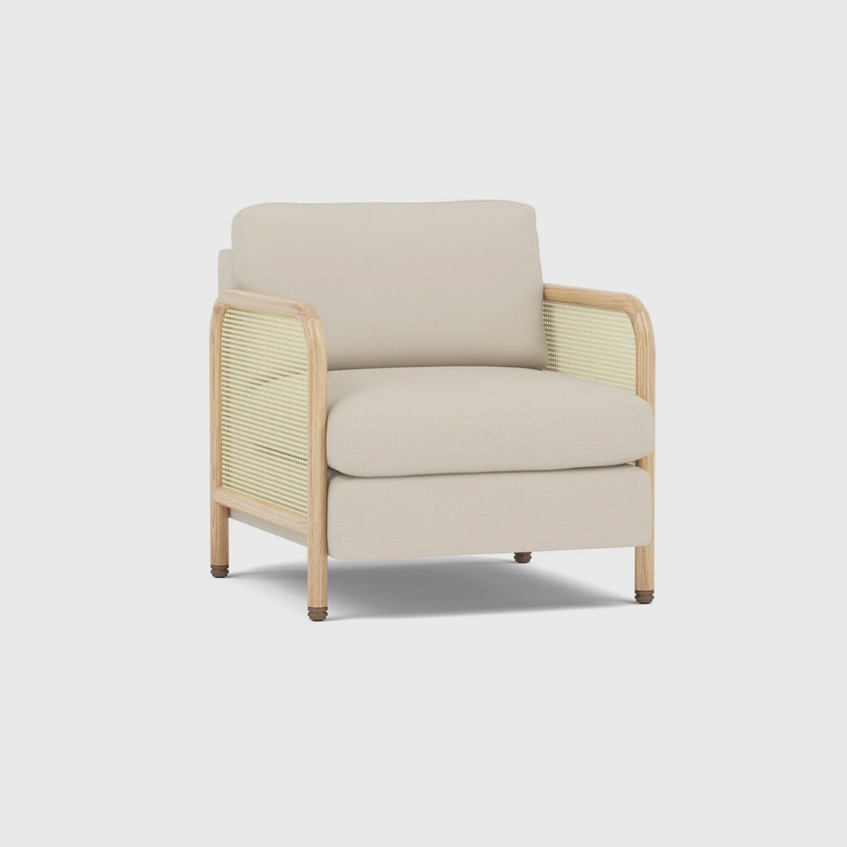 Material: Solid Oak & Natural Rattan with Feather, Down Blend and 100% Belgian Linen.